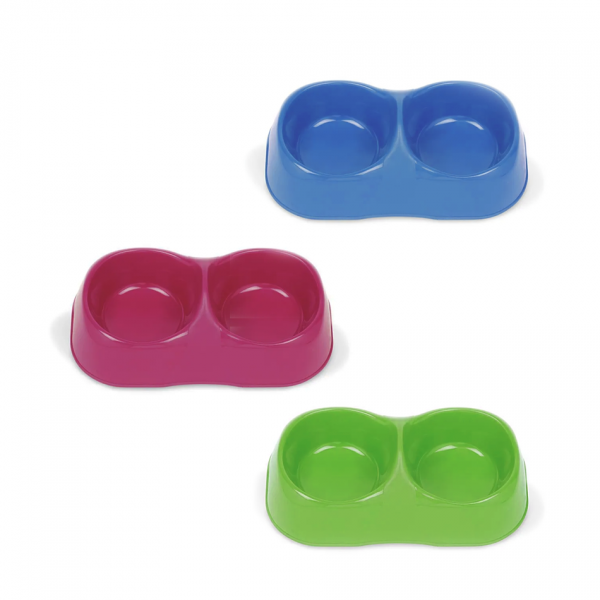 A classic double bowl, suitable for the puppy's transitional period, when he has not yet reached his larger bowl. This light bowl is easy to clean as it has a smooth surface. The black studs on the bottom of the container ensure that it does not move around where your dog is.
