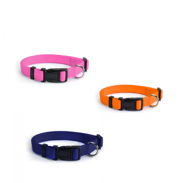Classic nylon dog collar. Great for a transitional collar in growing puppies or for the collar of a larger adult dog. Available in different colors.