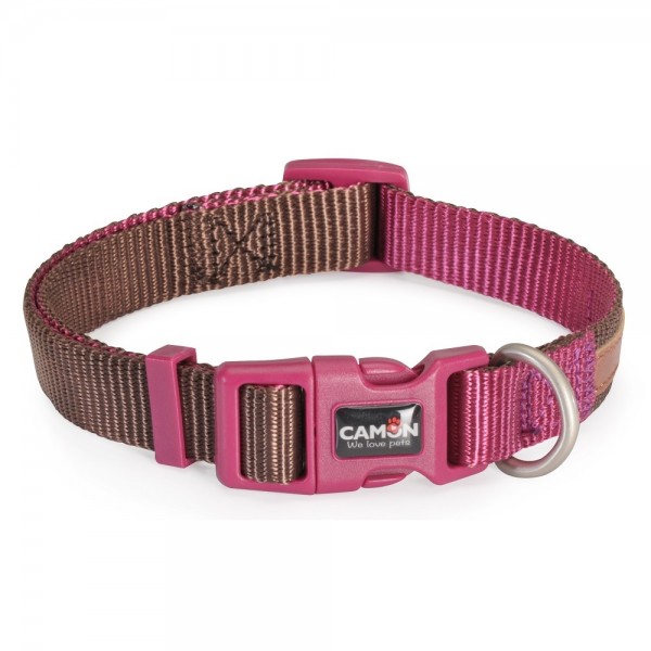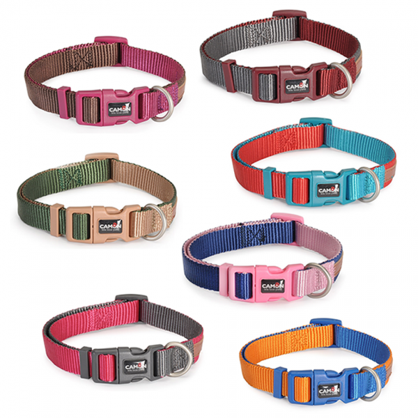 Colorful collar made of nylon tape that is easy to wash. The metal ring allows mooring to the collar, and the plastic buckle ensures that the collar is not too heavy. The collar is adjustable 48–66 cm cm in length.