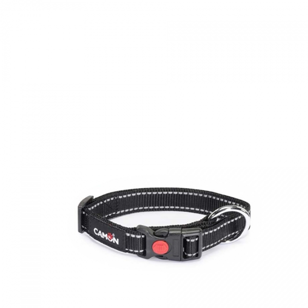 Collar made of nylon tape with sewn reflective stitch that is easy to wash. The metal ring allows mooring to the collar, and the plastic buckle ensures that the collar is not too heavy. The collar is adjustable 42-68 cm in length.