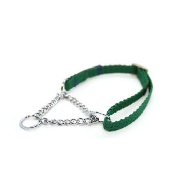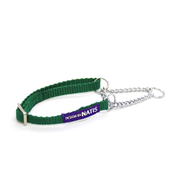 These simple collars do not have clips, but are simply placed over the dog's head. The metal part ensures that the collar can be stretched and tightened but only up to a certain length. The part of the collar that consists of the strap is adjustable and thus allows the collar to grow with the dog or adapts to different neck circumferences.