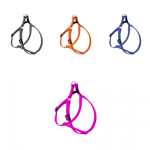 Classic step-in harness made of durable and washable nylon. Great for everyday use or for sports activities where the dog likes to pull. Available in different colors.