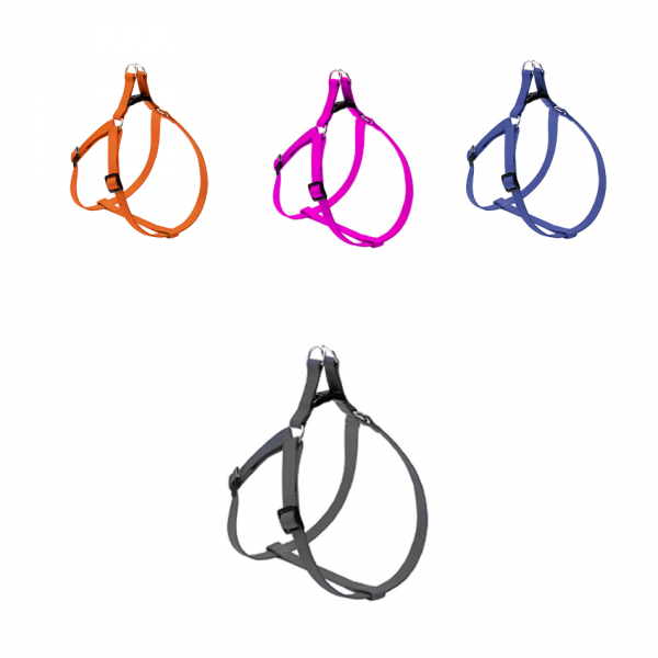 Classic step-in harness made of durable and washable nylon. Great for everyday use or for sports activities where the dog likes to pull. Available in different colors.