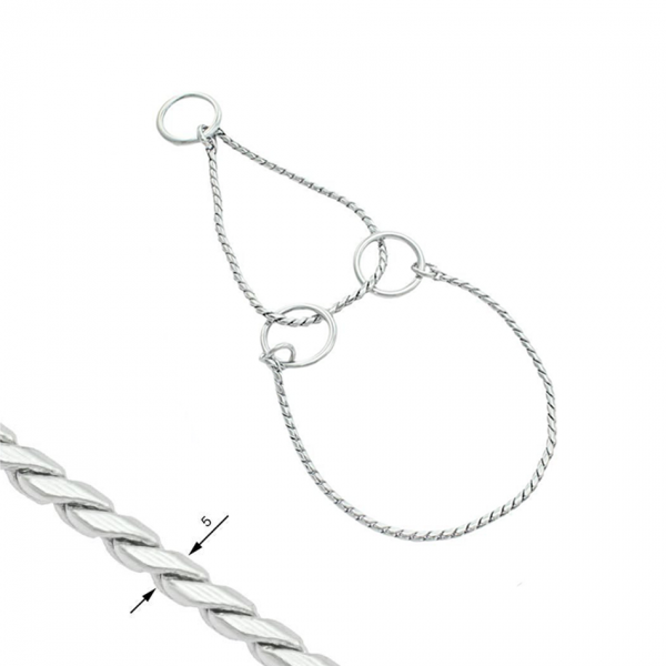 The collar intended for show days is made of a special knit that does not tear or pull hair. Rings at the end allow for any show lead to be attached to it. The length of the collar should be longer than the maximum circumference of the dog's head so that it can be easily put on and taken off.