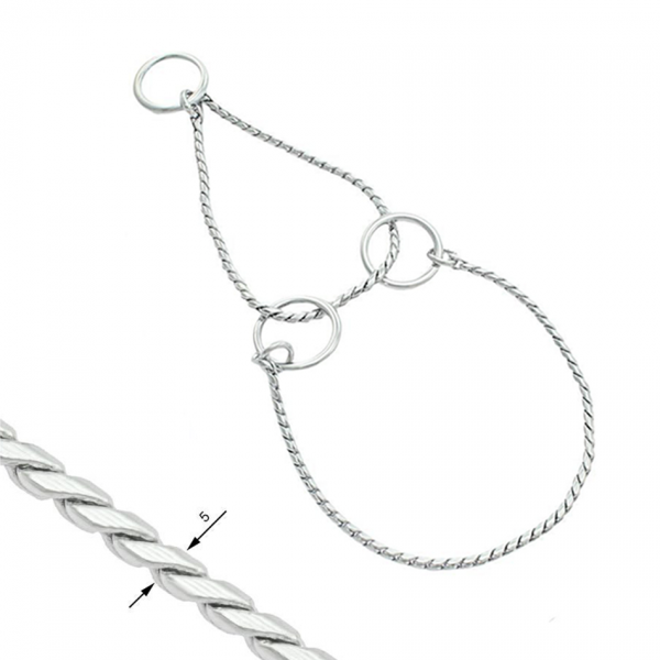 The collar intended for show days is made of a special knit that does not tear or pull hair. Rings at the end allow for any show lead to be attached to it. The length of the collar should be longer than the maximum circumference of the dog's head so that it can be easily put on and taken off.