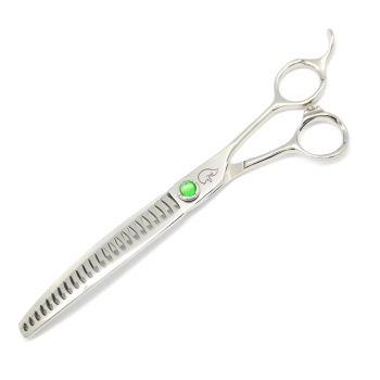 CHUNKER type efilirk is suitable for more experienced caregivers. Thick teeth cut a larger amount of hair, so it is necessary to have sufficient knowledge when using them. These chunker efilir scissors are curved and therefore excellent for finishing different types of hair - such as dogs with volume (poodles, curly bichon, pomeranian, etc.) and dogs with falling hair (shichu, maltese, coton, spaniel, etc.). They are excellent for finishing cuts and creating the final shape of a hairstyle.