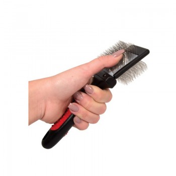 Double sided flexible slicker. Very soft and flexible to ensure confortable brushing on difficult parts.