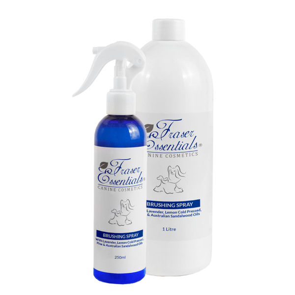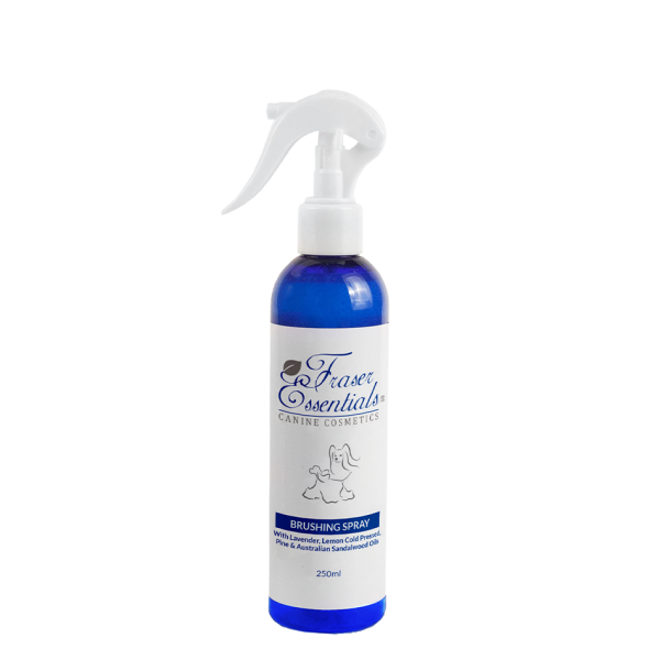 Apply an even mist of spray on either wet or dry coats before brushing. Frasers Brushing Spray will assist in loosening and preventing irritating knots while moisturising and restoring. The unique blend of natural essential oils will help to calm both you and your dog while being gentle on the skin.