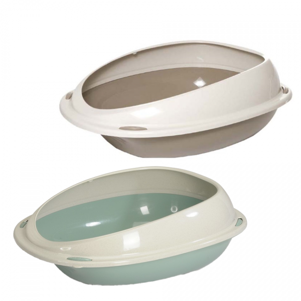 The innovative design of this toilet has high edges that prevent the cat from throwing sand on the walls or floor around the toilet. The smooth shiny plastic allows for easy cleaning. The toilet consists of two parts, which makes it easier to store.