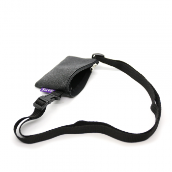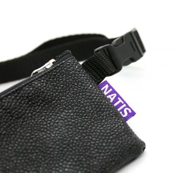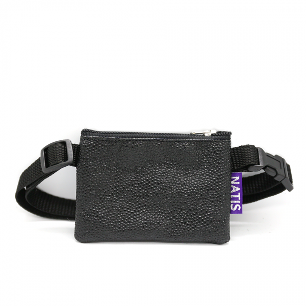 An elongated bag for treats made of artificial leather for the best possible durability against greasy stains caused by the treats stored in it. It has a zipper on the top that makes it easy to fasten and unfasten the opening for treats. The adjustable strap is already sewn onto the bag and allows for a wide range of adjustability (see dimensions below).