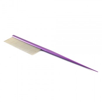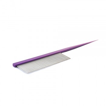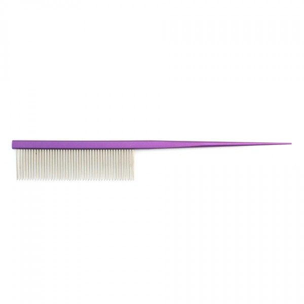 Ta poseben lahek kovinski glavnik z elegantno špico je obvezen pripomoček vseh, ki spenjajo dlako v gumice. Elegantna špica namreč omogoča odlično razdeljevanje dlake, ravno prav gosti zobi na drugem koncu pa skrbijo, da je to še veno uporaben glavnik med nanašanjem gumic.