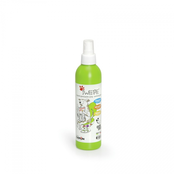 Sprej s katerim boste odstranili vonj ter preprečili psu, da bi ponovno lulal na istem mestu, saj popolnoma izniči vonj urina. Ko se zgodi nezgoda tako počistite in prešpricajte s Camon SweetPee sprejem. Narejen je popolnoma na naravni osnovi tako, da lahko pes tudi liže tla kjer je pošpricano in ne bo imel težav.