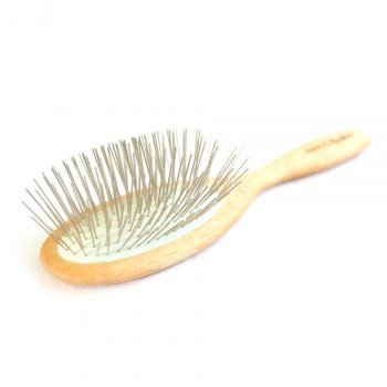 Ovalna lesena pin krtača je odličen pripomoček za prečesavanje dlake. Klasični pini so umeščeni v mehki a dovolj čvrsti blazinici za učinkovito česanje.