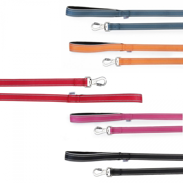 Odličen najlonski povodec z reflektivnimi šivi za boljšo vidljivost v temi. Udoben podložen ročaj bo poskrbel za kar največ udobja med sprehajanjem. Močan karabin ima možnost zaklepanja, da se pes ne more odpeti. Na voljo v različnih barvah.