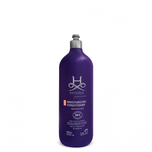 Hydra Groomers Moisturizing regenerator za pse in mačke, obogaten z ovsom. Primeren za vse pasme in tipe dlake saj vlaži dlako in spodbuja naraven sijaj.
