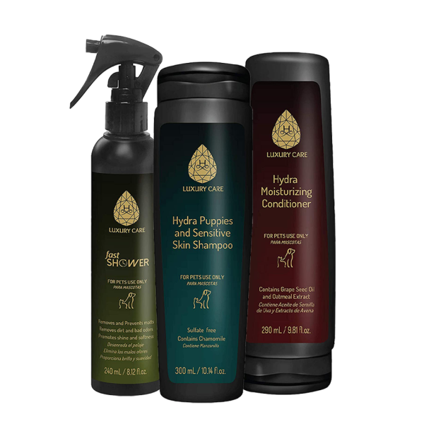 Razvajajte svojega ljubljenca z domačo nego na nivoju profesionalnega salona. Ta luksuzni komplet združuje nežni šampon za občutljivo kožo, vlažilni regenerator za mehko in sijočo dlako ter priročni suhi šampon, ki hitro osveži dlako po vsakem sprehodu.