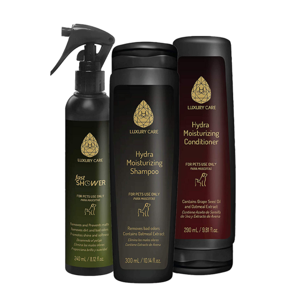 Popoln komplet za globinsko vlaženje kože in dlake – primeren za vse tipe dlak! Moisturising šampon in regenerator nahranita kožuh ter zmanjšata izsušenost, suhi šampon pa skrbi za svežino med kopanji. Idealna nega v času ogrevalne sezone.