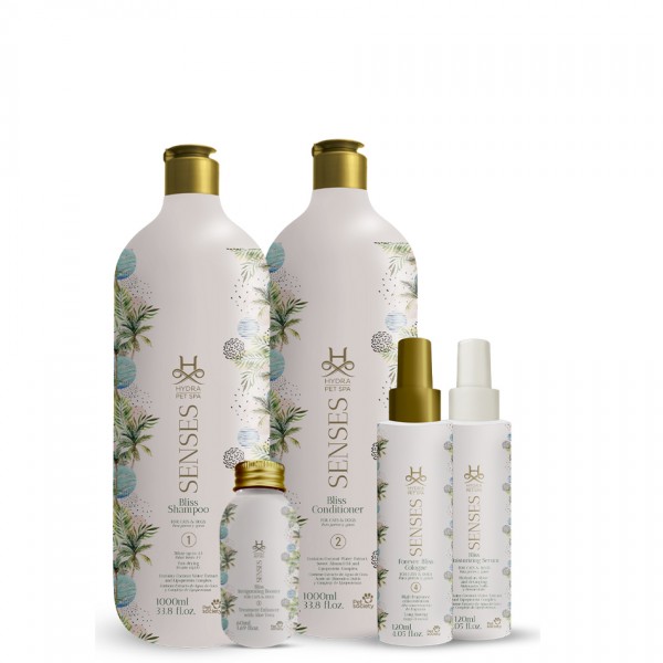 Paket izdelkov izjemne Hydra Spa Senses BLISS linije vsebuje celotno kolekcijo izdelkov ter mešalno posodico in spatulo za mešanje regeneratorja in boosterja!