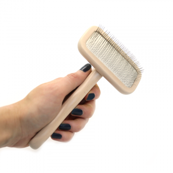 Slicker krtača je obvezno orodje vsakega lastnika malih živali s srednjo ali dolgo dlako. Ta univerzalna krtača je tako vsestranska, da lahko z njo rešujete večino težav, ki se pojavljajo pri psih z daljšo dlako.