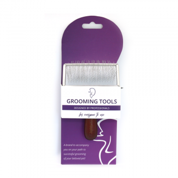 Ta majhna slicker krtača s srednje dolgimi čvrstimi iglicami je odlična za težko dostopne oz. manjše predele, z zmerno gosto dlako. Kovinska glava je tanka in ravna, zakar lahko češete tudi težje dostopne predele.