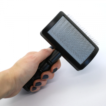Slicker krtača je obvezno orodje vsakega lastnika malih živali s srednjo ali dolgo dlako. Ta univerzalna krtača je tako vsestranska, da lahko z njo rešujete večino težav, ki se pojavljajo pri psih z daljšo dlako.