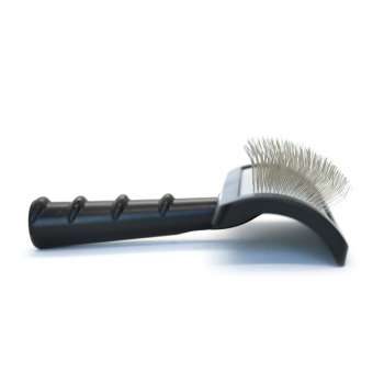 Zakrivljena slicker krtača narejena iz plastike je izredno lahka in udobna za daljša česanja. Njene srednje dolge iglice skrbijo za to, da je vsestransko uporabna, zakrivljena glava pa še poveča polje česanja in sledi našim gibom.