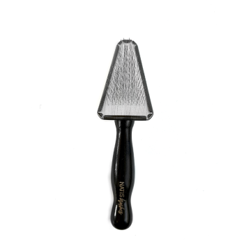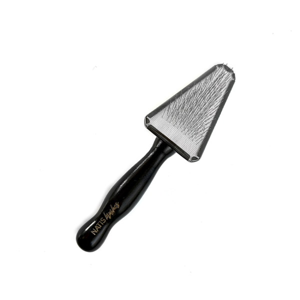 Trikotna slicker krtača NATIS s čvrstimi iglicami je idealna za natančno česanje težje dostopnih mest. Učinkovito odstrani vozle, odmrlo dlako in umazanijo ter je primerna za pse in mačke z daljšo ali gostejšo dlako.