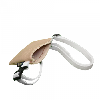 Podolgovata torbica za priboljške narejena iz umetnega usnja za kar najboljšo obstojnost pred prepuščanjem mastnih madežev, ki nastanejo zradi priboljškov, ki jih shranjujemo v njej. Na vrhu ima zadrgo, s katero enostavno zapnete in odpnete odprtino za priboljške. Nastavljiv trak je že našit na torbici in omogoča velik razpon nastavljivosti (glej dimenzije spodaj).