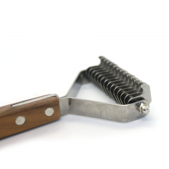 Orodje z zakrivljenimi kovinskimi zobci je narejeno za uspešno odstranjevanje odmrle dlake. Mehka poddlaka, ki se mora odstraniti se ujame med zobce in jo s potegom v smeri rasti dlake odstranimo iz kožuha. To orodje je primerno za domačo rabo saj lahko z njim učinkovito nadzirate odpadanje dlake.