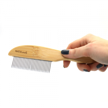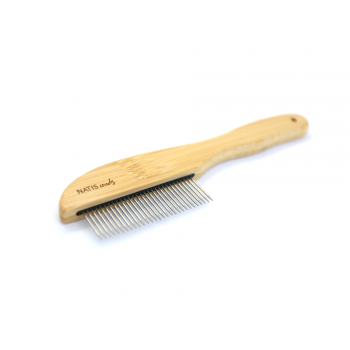 Čvrst leseni glavnik s krajšimi zobci je idealen za česanje čvrste dlake. Njegov robusten ročaj omogoča dobro vodljivost skozi kakršen koli tip dlake.