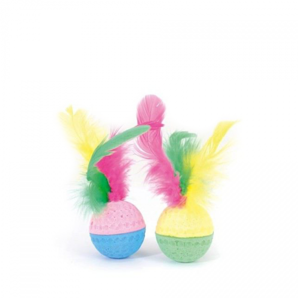 Ta simpatičen komplet mehkih žogic zabava vsako mačko, ki obožuje kotaleče igrače. Lahko jih nosi v gobčku, frca s tačko ali drži s kremplji, saj je zelo mehka, prožna in lahka. Komplet vsebuje 2 barvasti žogici.